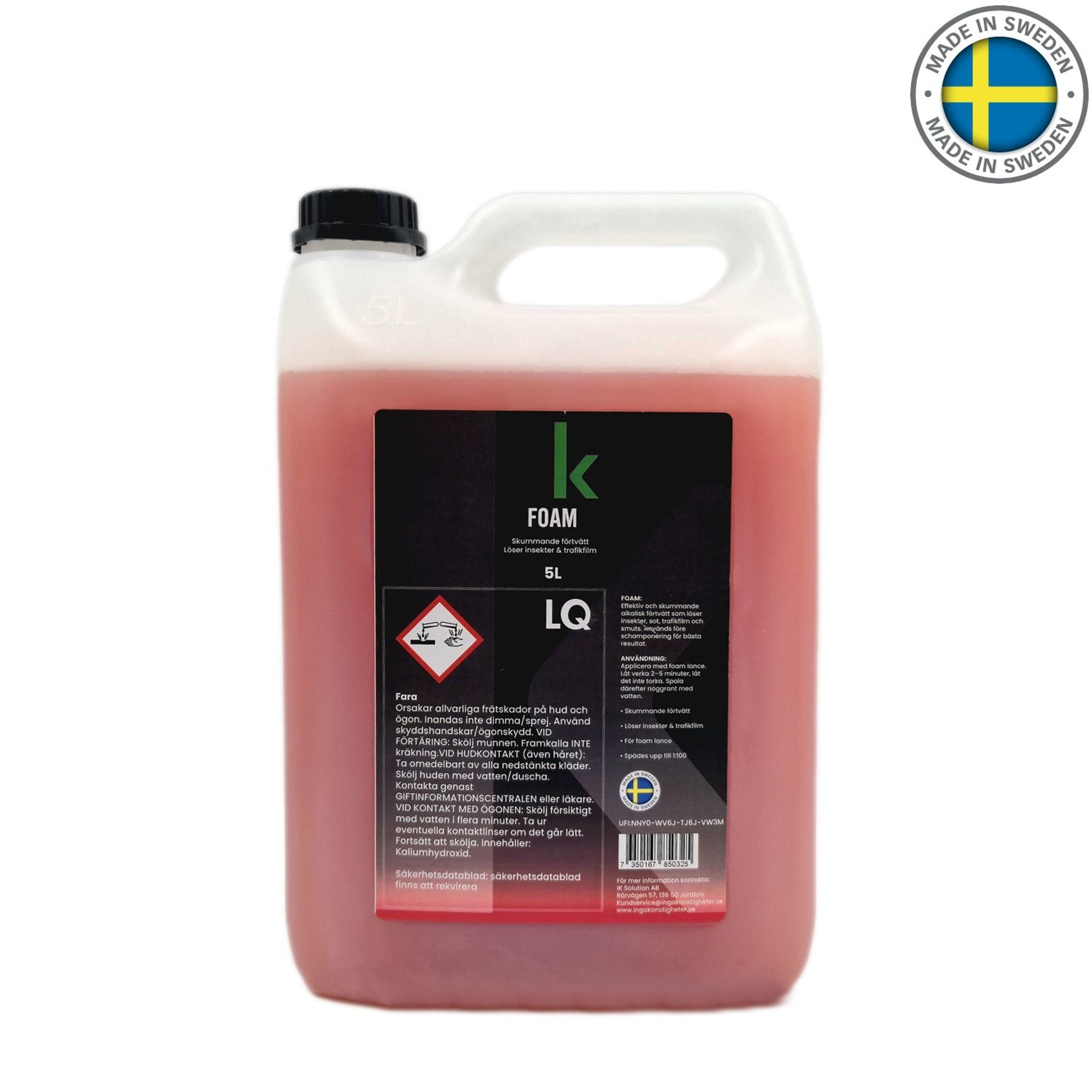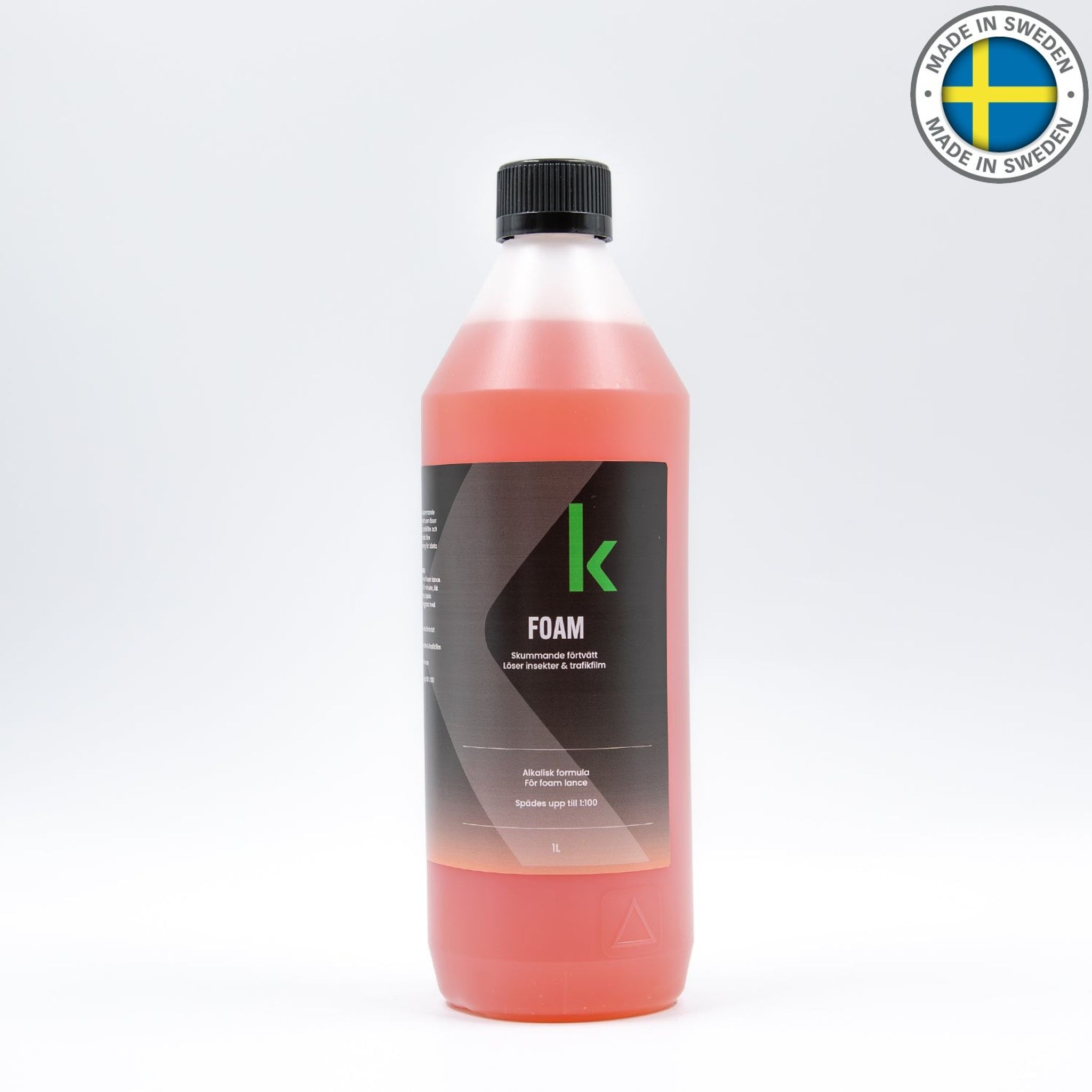 FOAM är en skummande förtvätt med alkalisk verkan som effektivt löser upp smuts, trafikfilm, pollen och insektsrester innan den manuella handtvätten påbörjas. Produkten bildar ett tätt och hängande skum som stannar kvar längre på ytan, vilket gör rengöringen både effektiv och skonsam mot bilens lack.