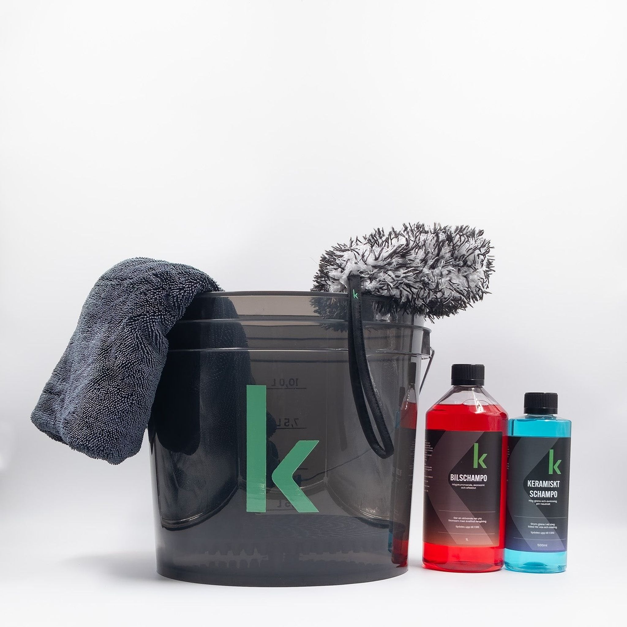 Med Hinkpaket V1 får du allt du behöver för en skonsam och effektiv biltvätt. Paketet innehåller en tålig IK Tvätthink 13 L med Grit Guard som håller smutsen borta från svampen, samt både Bilschampo 1 L och Keramiskt Bilschampo 500 ml för kraftfull rengöring, hög glans och skydd. Tillsammans med den mjuka Mikrofiber Tvättsvampen och den extra stora Torkduken Jonna 60x90 cm (1200 GSM) får du en helhetslösning som lämnar bilen skinande ren och blank utan repor och inga konstigheter.