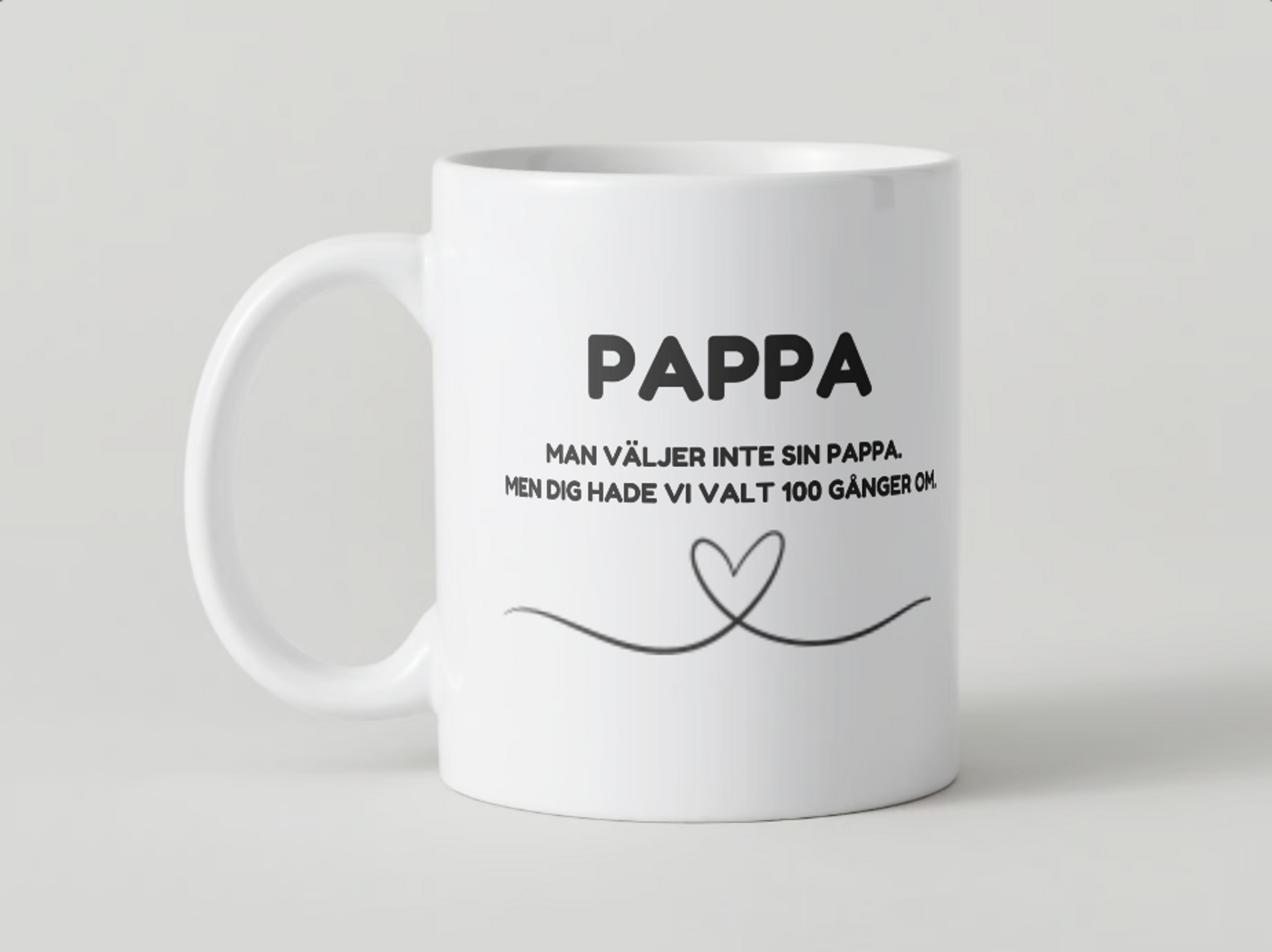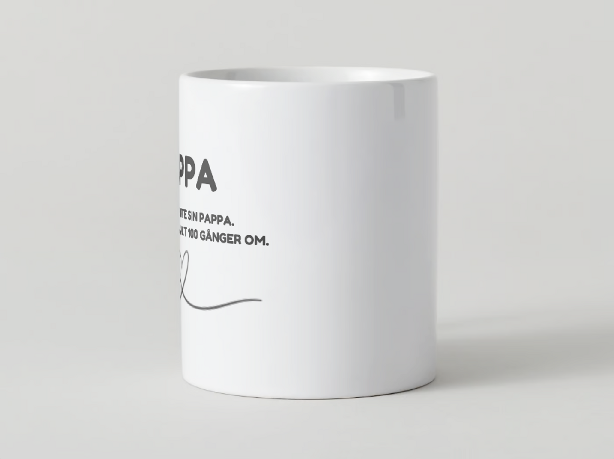Letar du efter den perfekta presenten till Fars dag eller bara ett sätt att visa din uppskattning? Denna eleganta och personliga mugg är mer än bara en dryckesbehållare – det är ett dagligt bevis på din kärlek. Välj mellan två hjärtevärmande budskap: