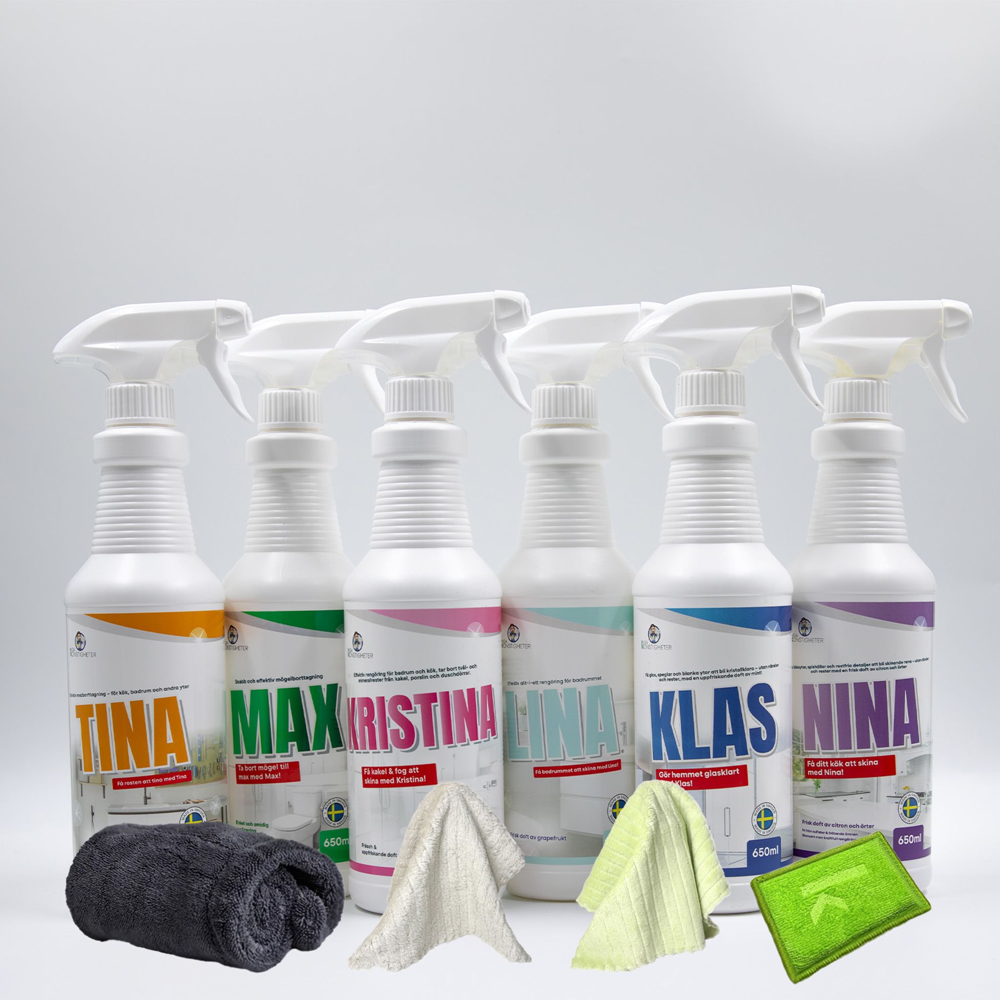 Max, Kristina, Klas, Nina, Lina & Tina – Rengöringspaket Stor med Tillbehör (Jonna 40x40)