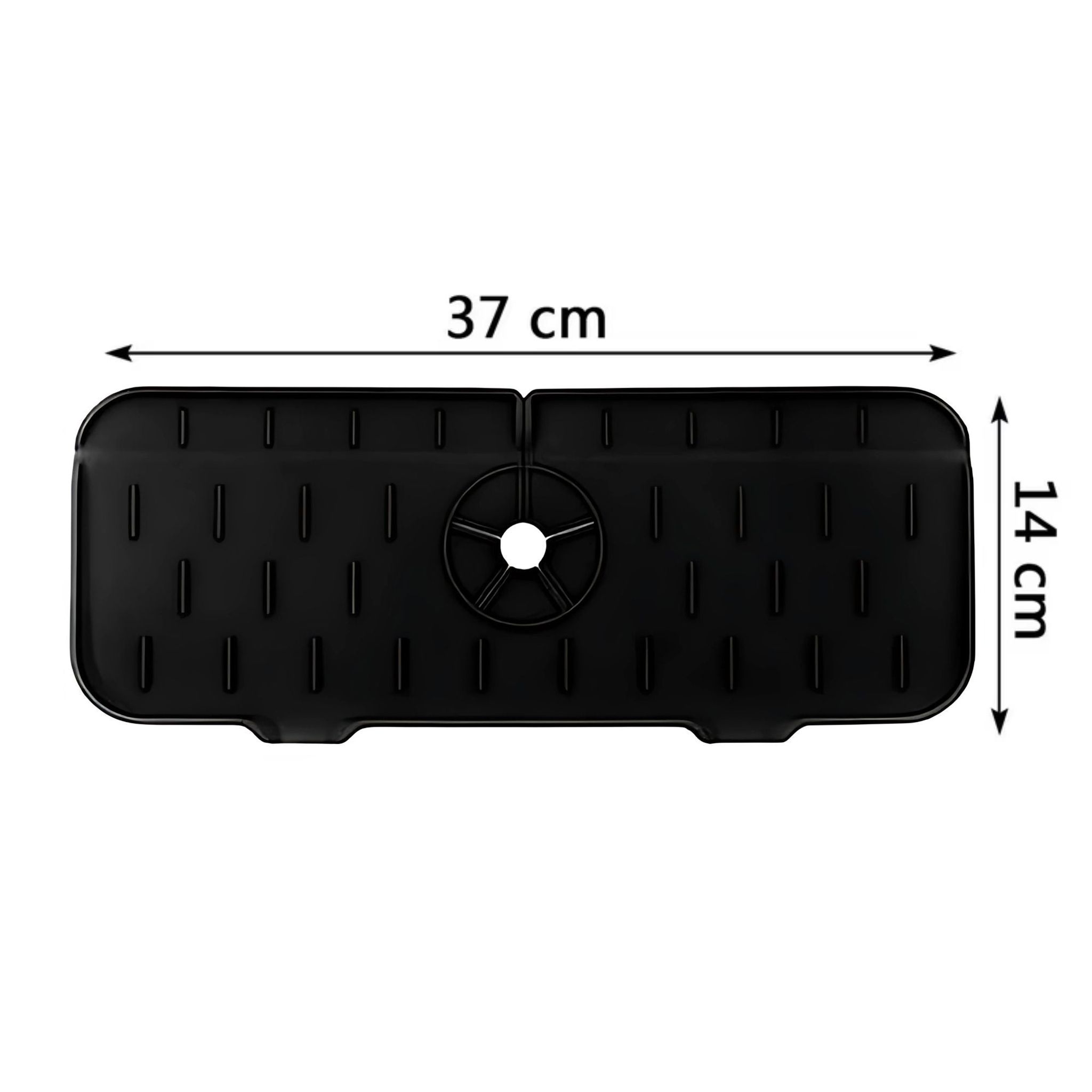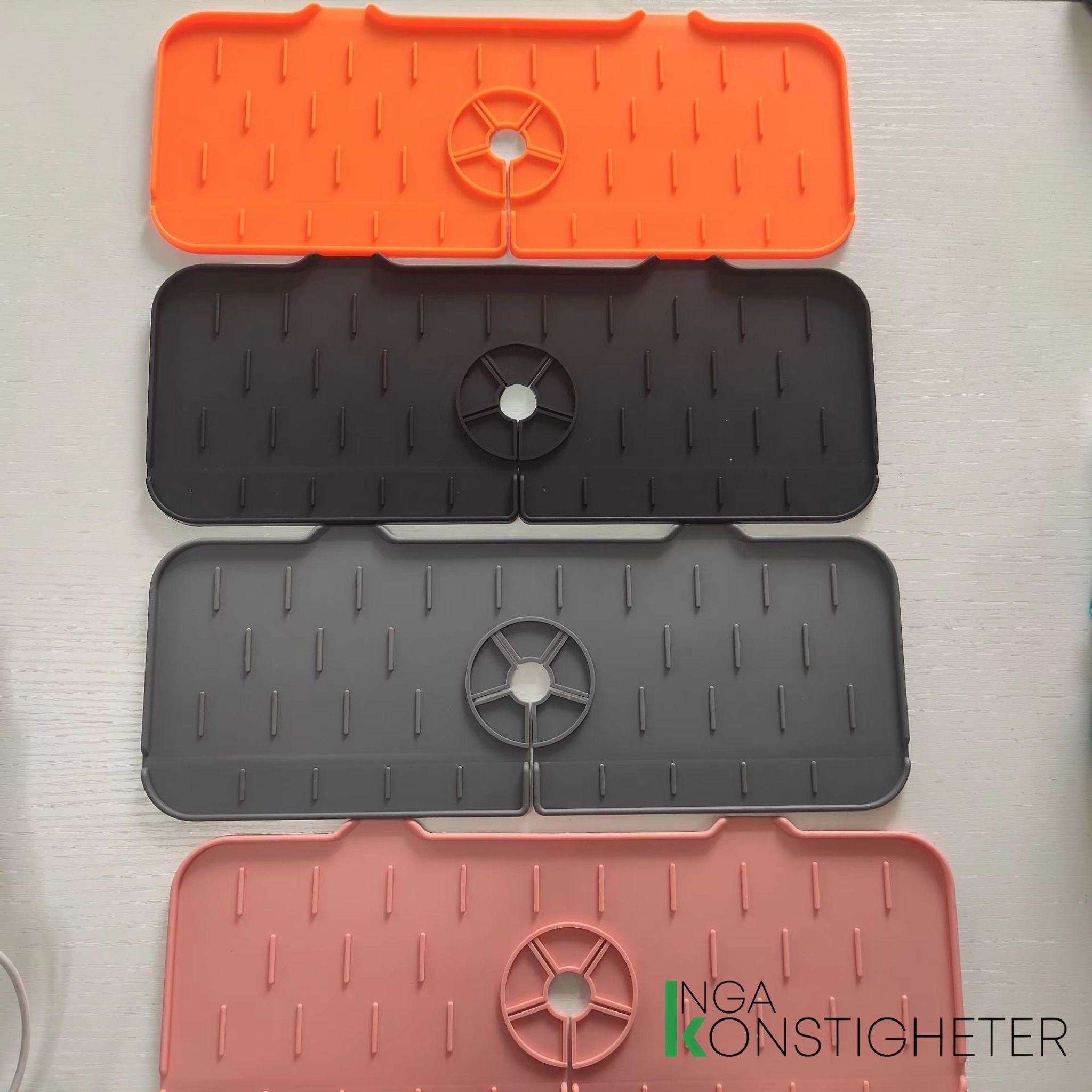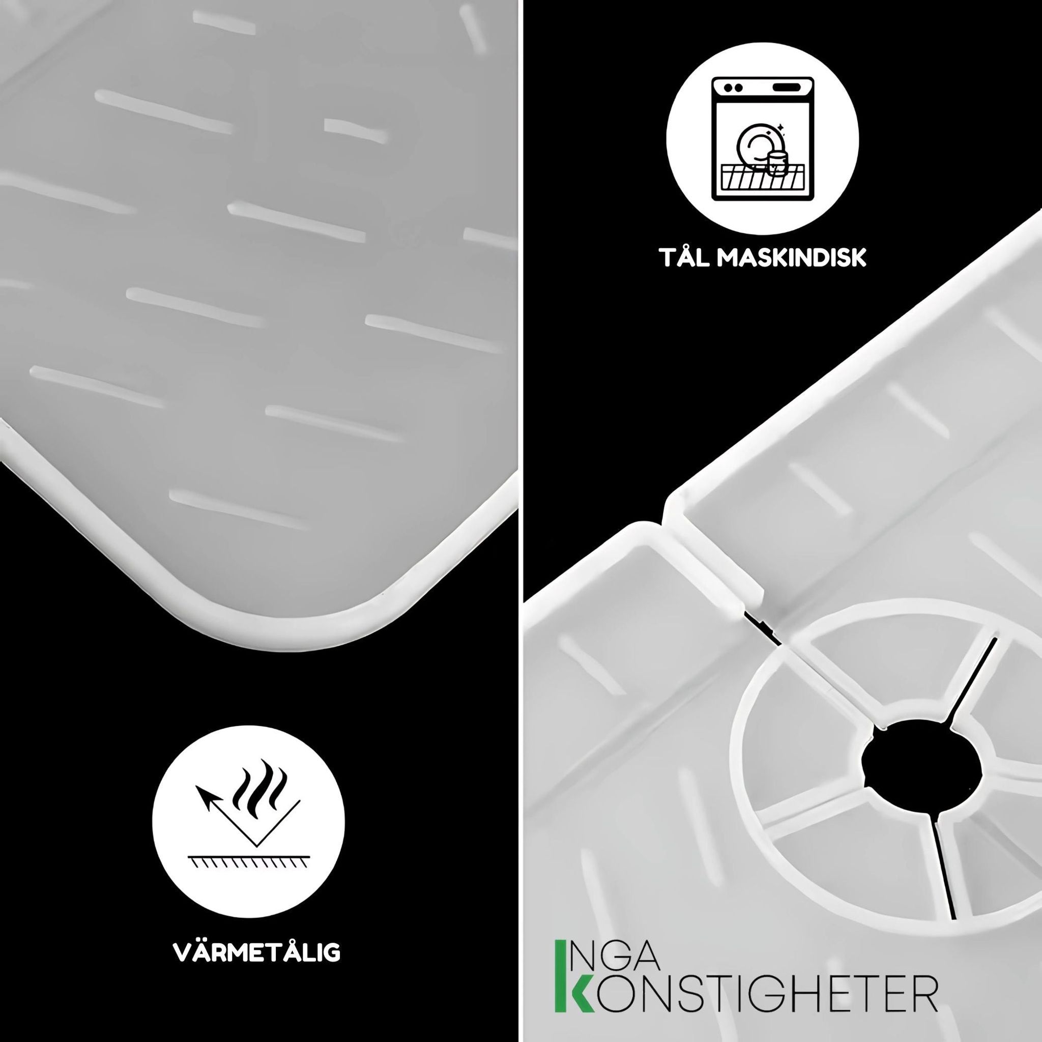 Sanna är ett smart stänkskydd i silikon med integrerad dränering som håller ytan runt kranen ren, torr och fri från fläckar. Mattan fångar effektivt upp vatten och leder tillbaka det direkt ner i vasken – en smidig lösning för både kök och badrum.