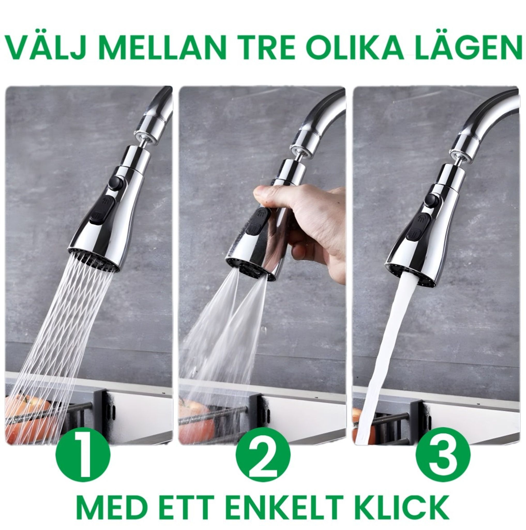 Bosse är din köksvän som ger dig överlägsen kontroll över vattenflödet. Med flera inställningar kan du enkelt justera trycket efter behov från mjuk stril till kraftig stråle. Perfekt när du fyller kastruller, sköljer grönsaker eller diskar tallrikar. Den användarvänliga designen gör det enkelt att växla mellan olika lägen för att alltid ha rätt vattenflöde för varje uppgift.