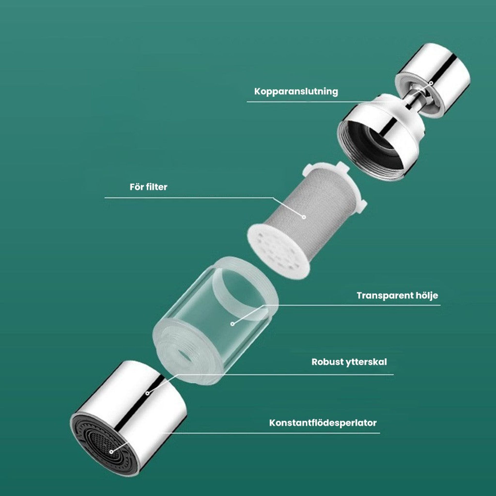 - Material: Rostfritt stål, koppar, PP-filter